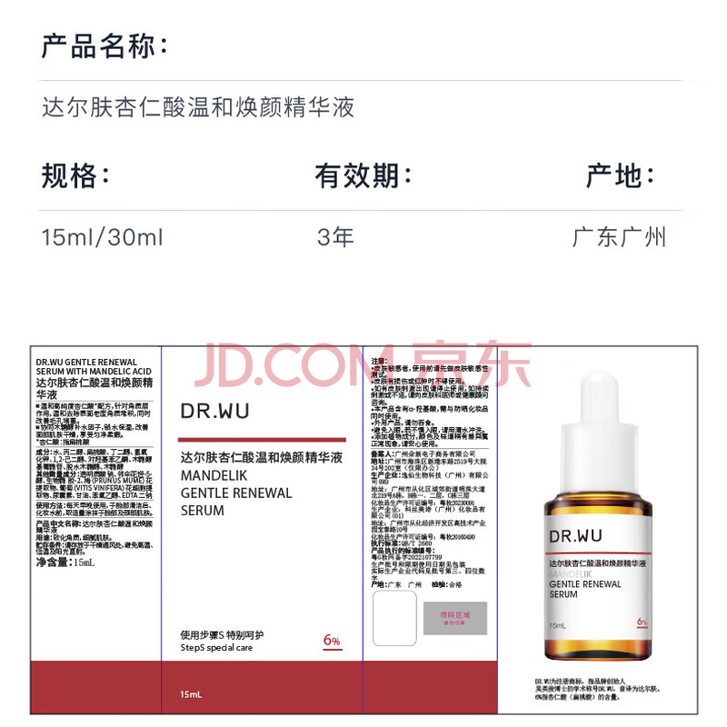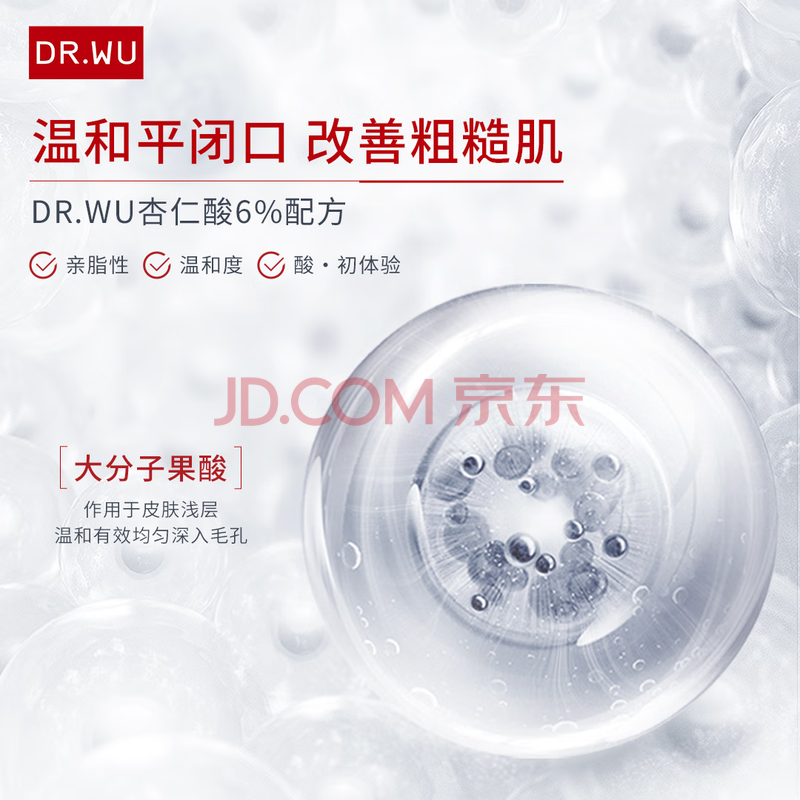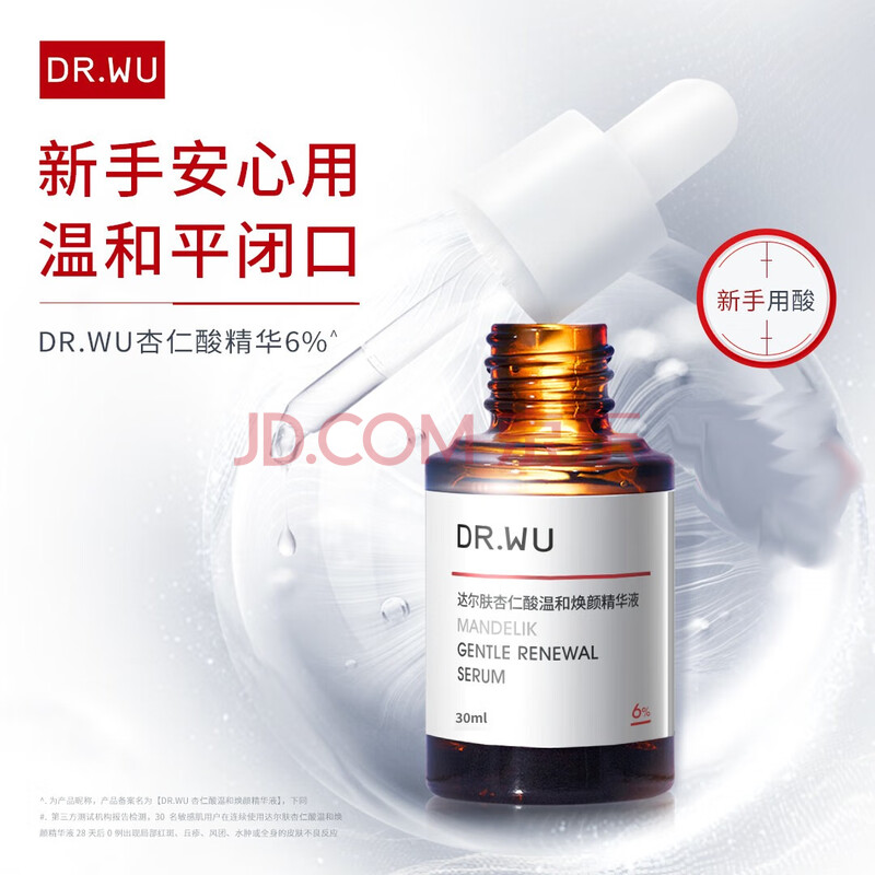 商品相册:达尔肤(DR.WU)杏仁酸精华6%30ml三重酸果酸细腻肌肤去角质闭口收毛孔提亮护肤第