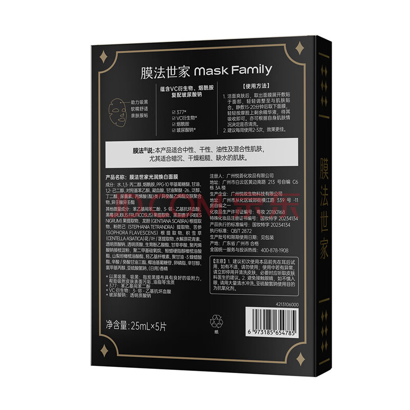商品相册:膜法世家光润焕白面膜5片 烟酰胺美白补水保湿锁水淡斑提亮肤色送女生第