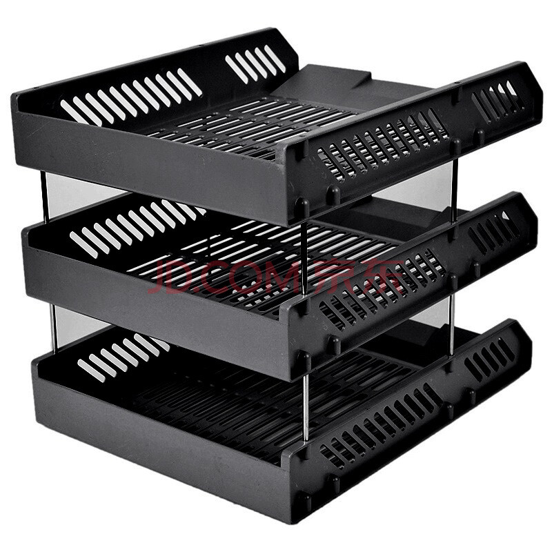 商品相册:齐心(COMIX)三层镂空收纳文件座 自由拆卸组装三层文件盘/文件框/文件架 牢固耐用 办公用品 黑色B2060第