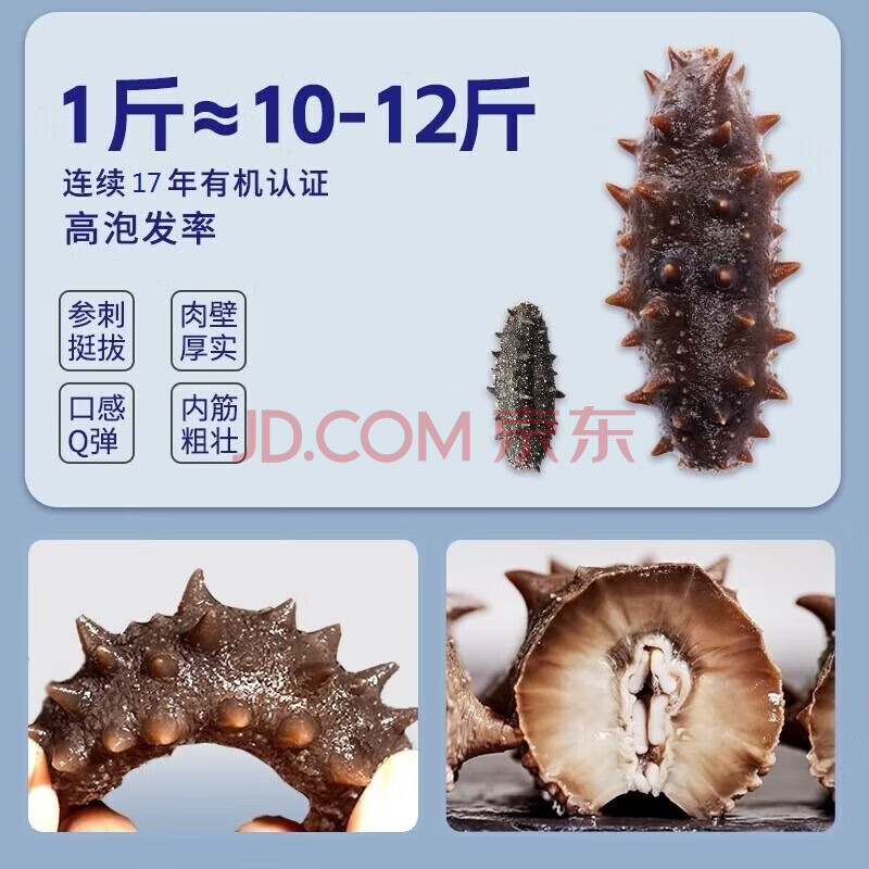 商品相册:好当家 威海有机干海参 500g 1斤装 约81-100只 节日礼盒装 海产干货第