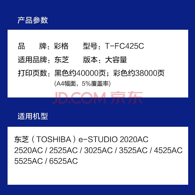 商品相册:彩格T-FC425C四色大容量粉盒 适用东芝2020AC 2520AC 2525AC复印机碳粉盒3025 3525 4525AC 5525AC打印机硒鼓墨盒第