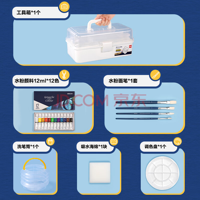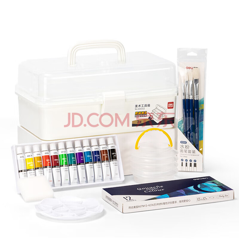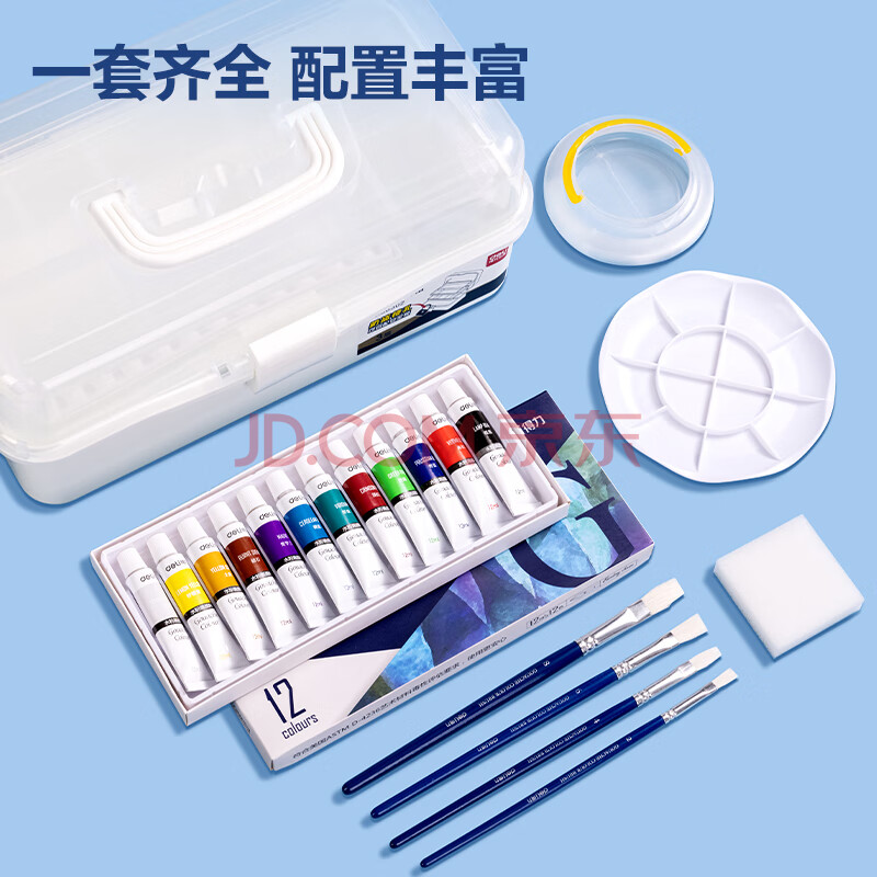 商品相册:得力水粉颜料12色艺学生考联考色彩课组合绘画彩绘品质颜料套装HS311-12女孩可水洗手搓颜料第