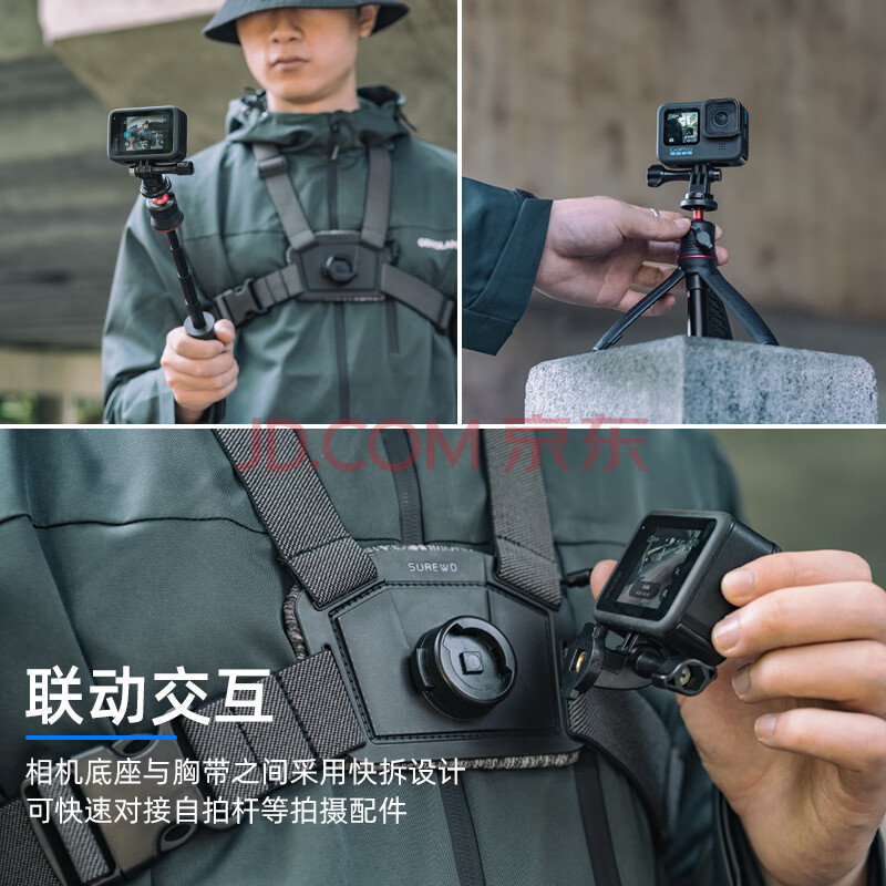 商品相册:SUREWO适用dji大疆gopro运动相机快拆胸带action5pro/6胸前固定支架acepro2骑行胸挂nano action4 3配件第