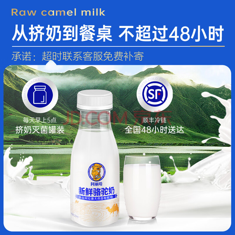 商品相册:阿丽塔纯骆驼奶鲜驼奶0蔗糖孕妇儿童中老年成人 鲜奶250ml*6瓶 源头直发第1张/共5