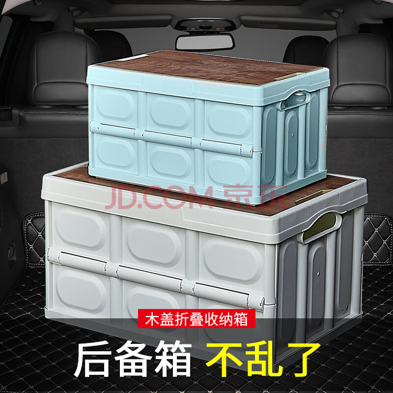 商品相册:克鲁尼 车载储物箱木盖款车用折叠箱 便携式户外储物箱木纹小号30L蓝色 第