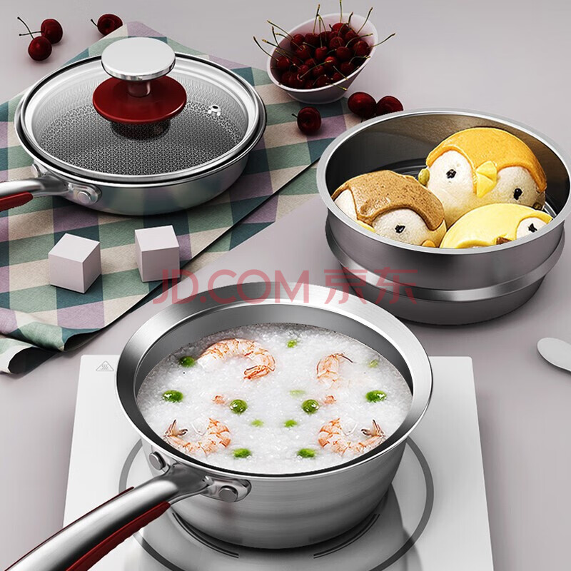 商品相册:康巴赫(KBH)儿童辅食锅套装 煎锅+奶锅+蒸笼 FJN2A 16cm第