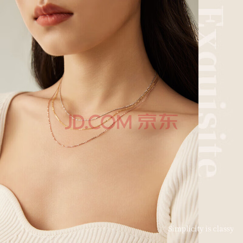 商品相册:周大生【生日礼物】18K金项链O字锁骨链素链送女生 约0.8g第