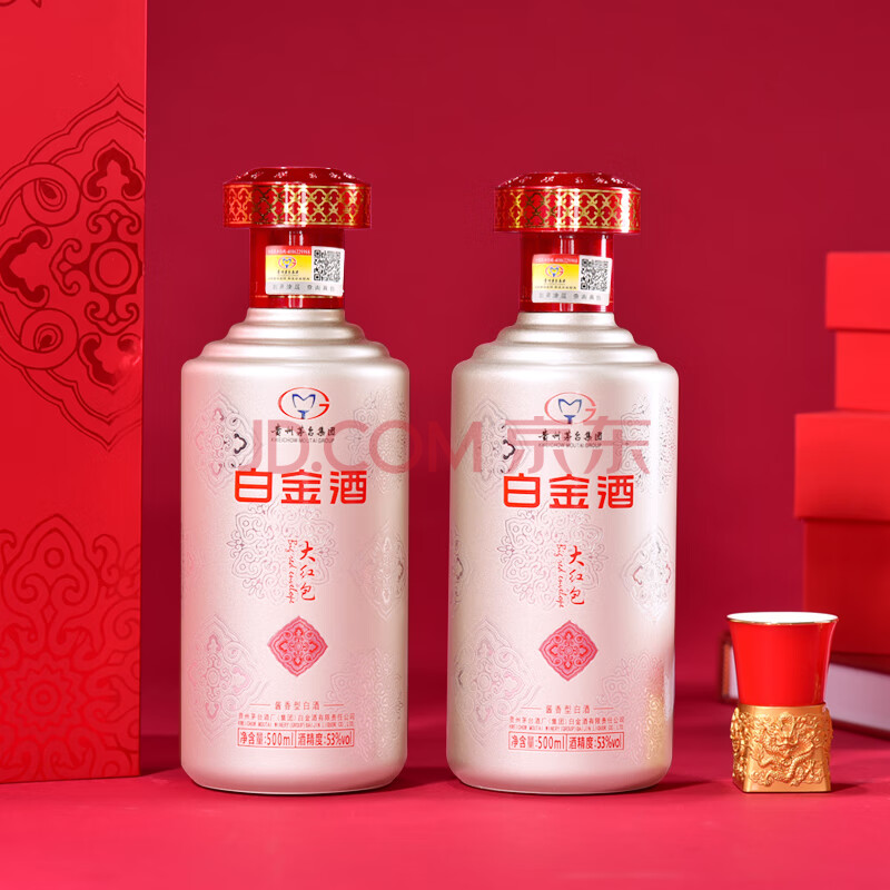 商品相册:茅台白金酒中国红礼盒 19年-20年 53度酱香型白酒 500ml*2瓶礼盒装第