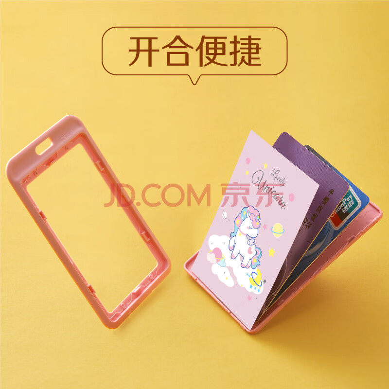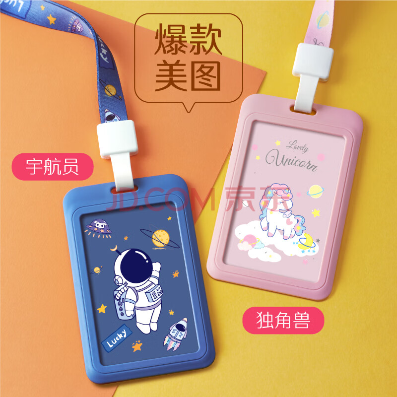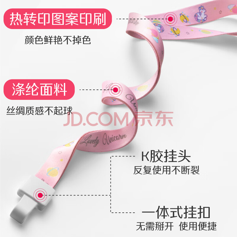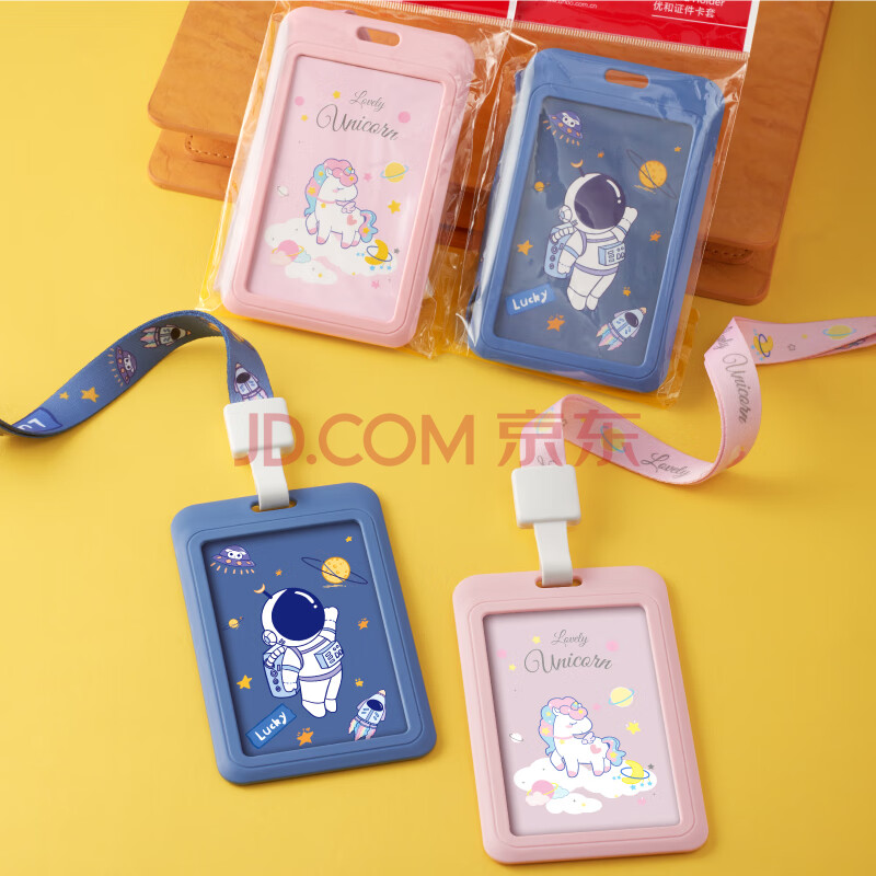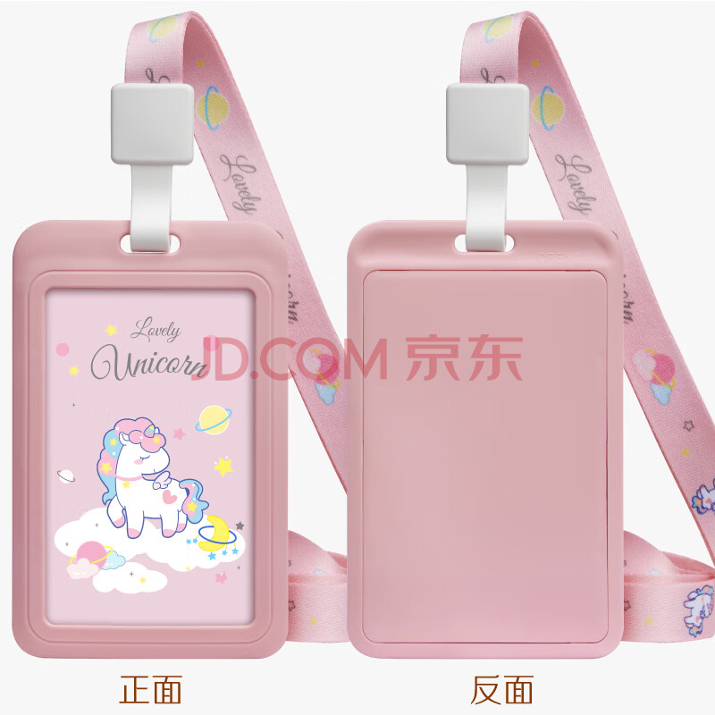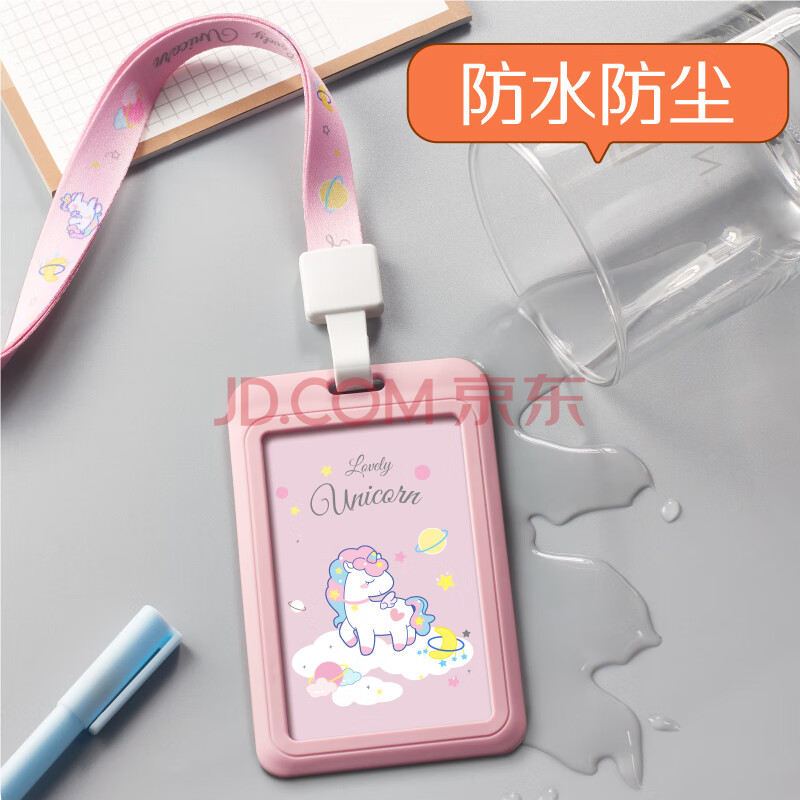 商品相册:优和(UHOO)【开学文具】学生证件卡套 公交卡套儿童胸牌工作牌饭卡校园卡竖式【独角兽】卡套+挂绳粉色 7116第