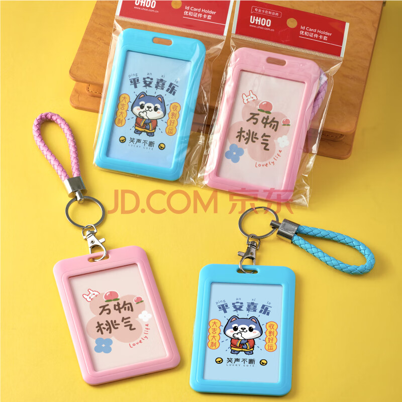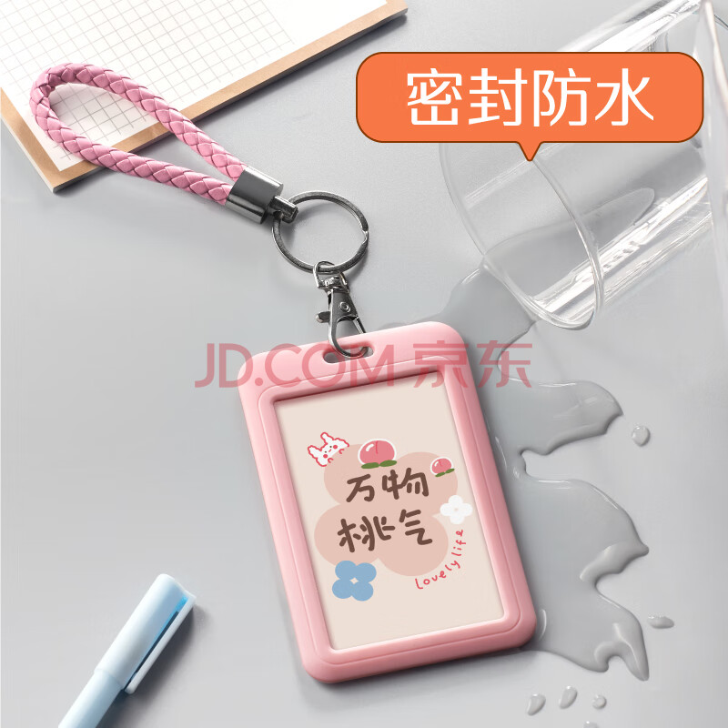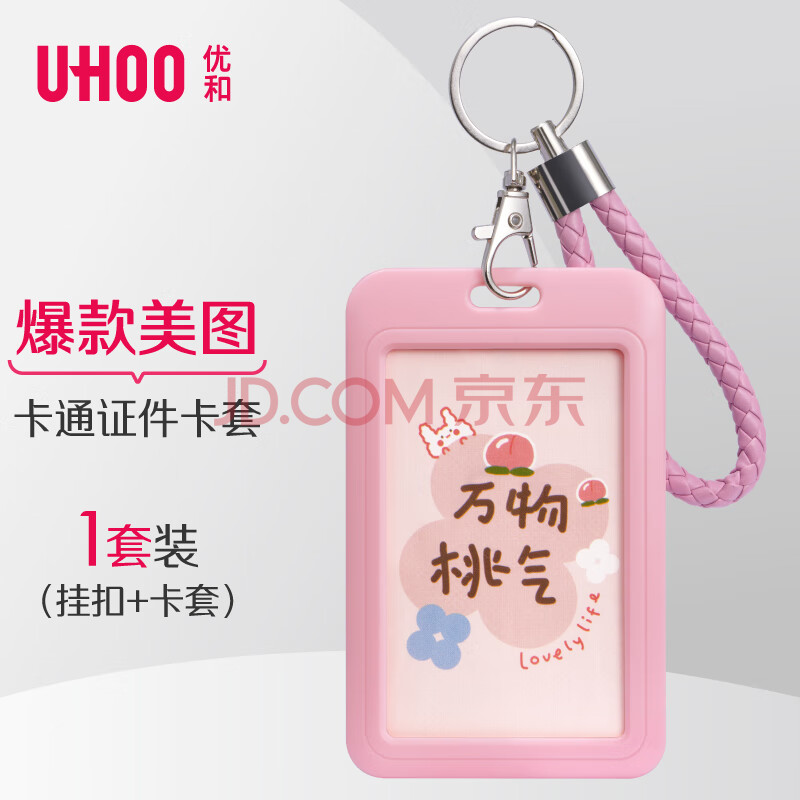 商品相册:优和(UHOO)【开学文具】公交卡套保护套钥匙扣证件卡套 学生动漫校园卡【万物桃气】卡套+编织皮绳 7218第