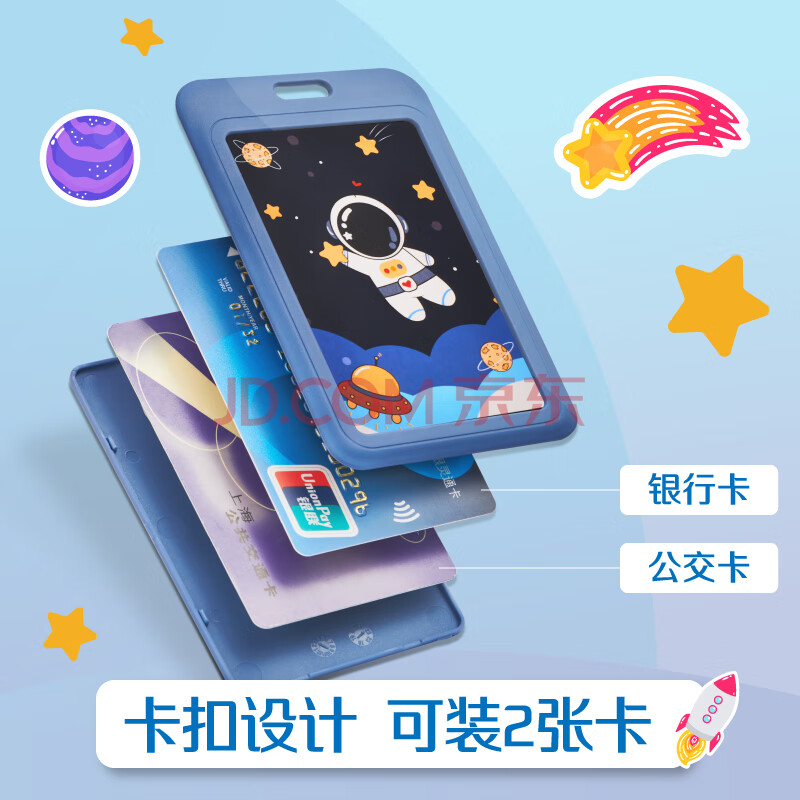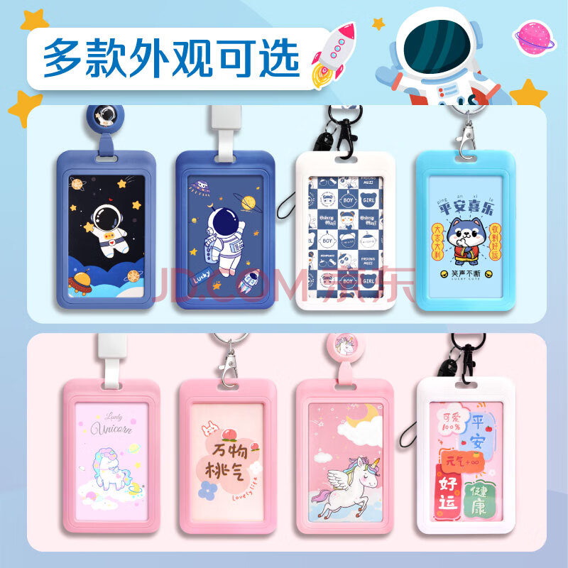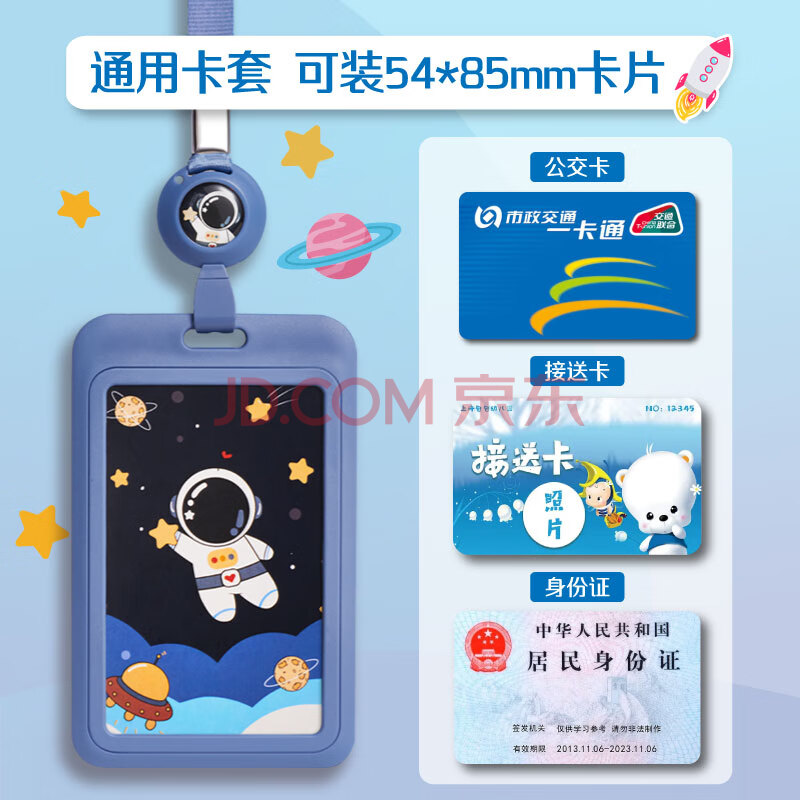 商品相册:优和(UHOO)【超级爆款】学生证件卡套 公交卡套儿童胸牌工作牌饭卡校园卡竖式【宇航员】卡套+挂绳灰蓝 7116第