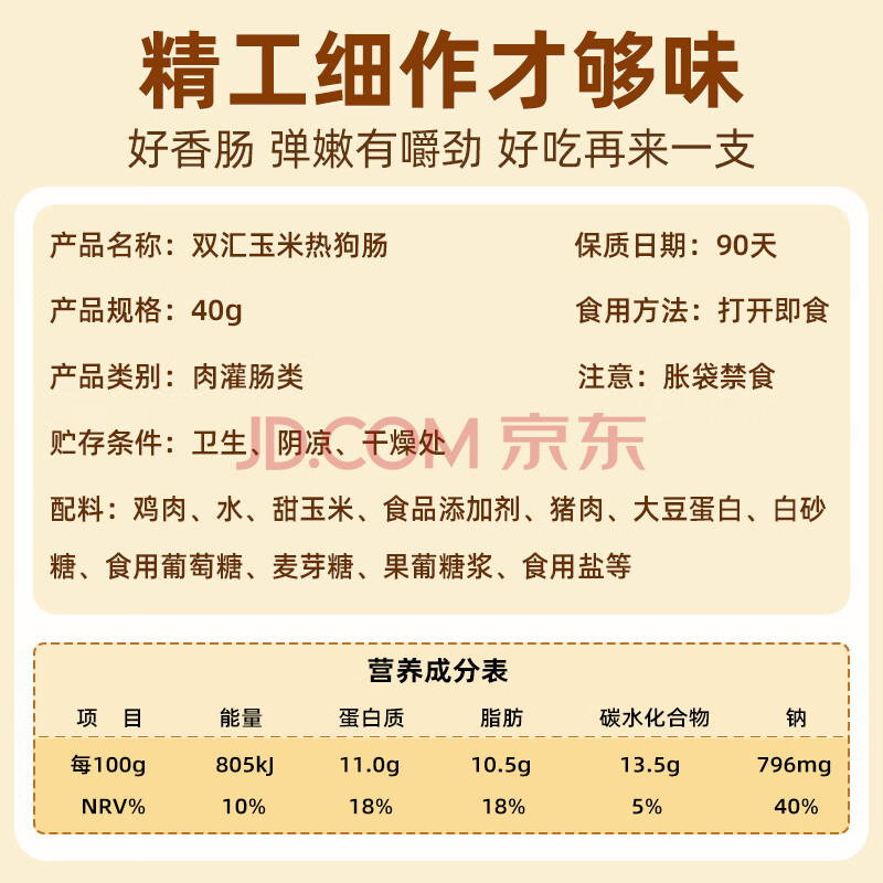 商品相册:双汇 玉米热狗肠40g*16支 火腿肠 休闲零食 香肠 烧烤露营 速食 出游第