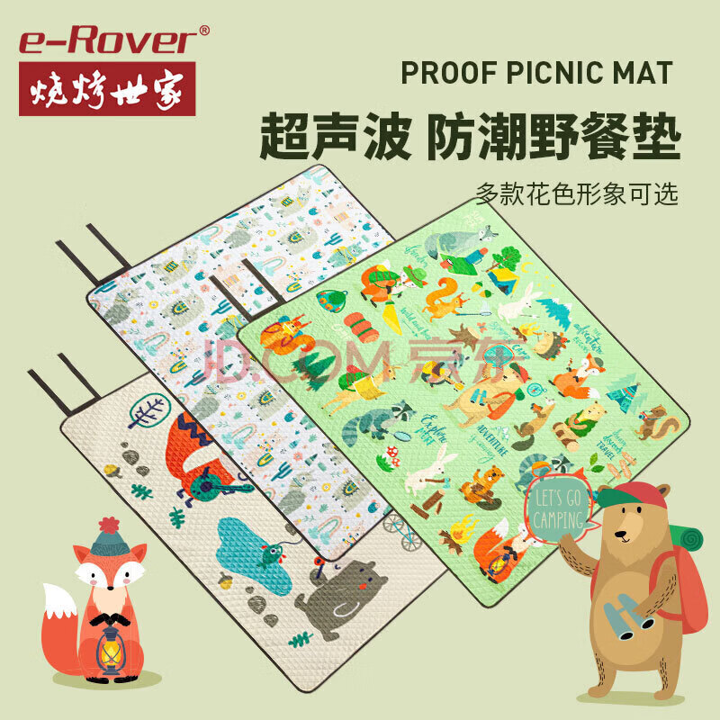 商品相册:烧烤世家(e-Rover) 户外加厚野餐垫防潮垫 野营野外露营地垫防水野餐布郊游沙滩垫子第