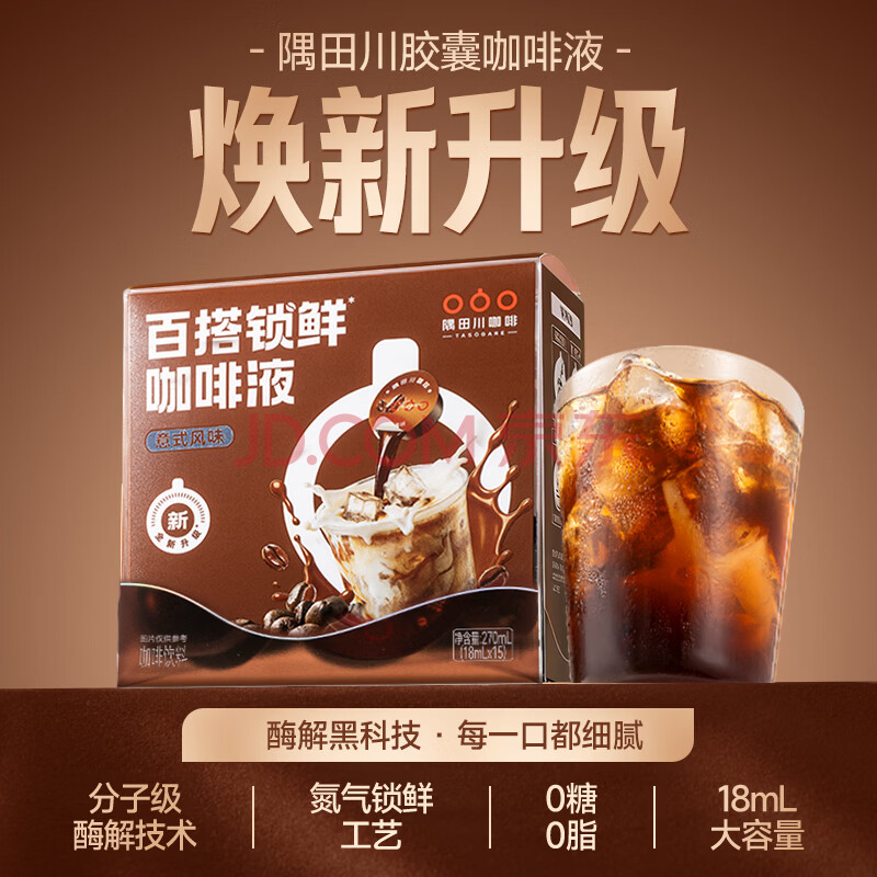 商品相册:隅田川全新锁鲜咖啡液Pro速溶浓缩液鲜萃原味黑咖啡15颗*18ml第1张/共5