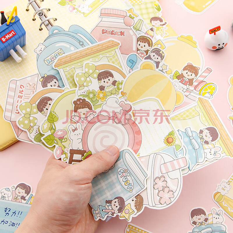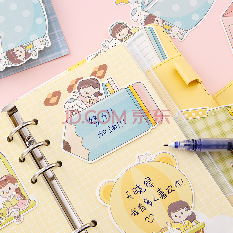 商品相册:誉禾卡通异形便签纸创意可爱少女手帐拼贴素材纸无粘性装饰纸可书写DIY记事标记纸100张 4232我爱学习第