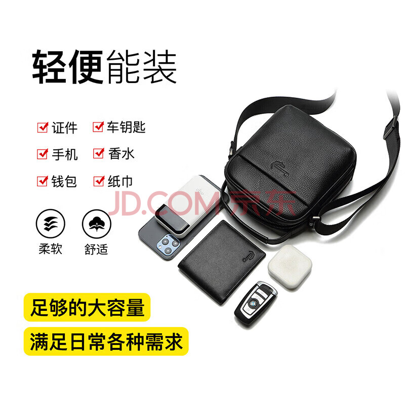 商品相册:鳄鱼恤头层牛皮男士休闲单肩包男包时尚百搭青年斜挎包包T1167送男友第