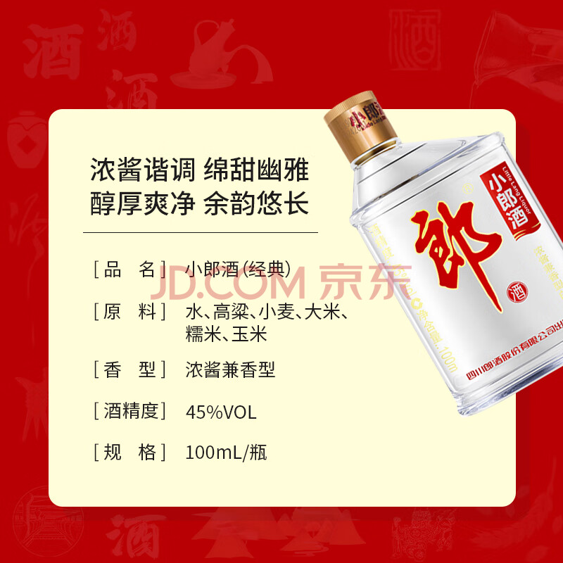 商品相册:郎酒 小郎酒经典款 兼香型白酒 45度 100mL*6瓶 整箱装第