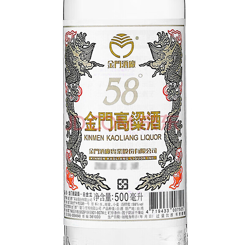 商品相册:金门高粱 双龙系列白金龙 清香型白酒 58度500ml 单瓶装 宴请送礼第