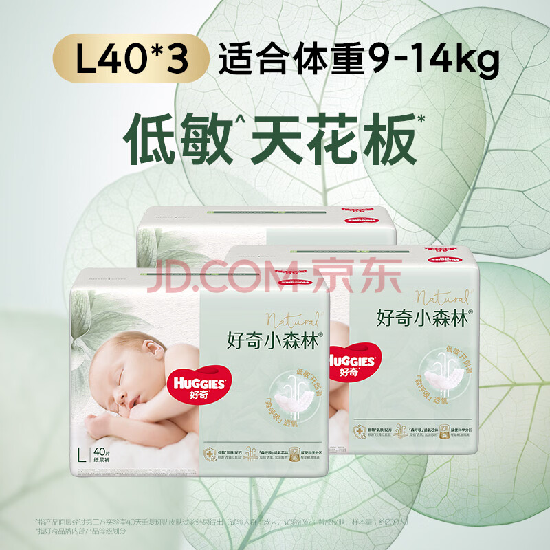 商品相册:好奇(Huggies)小森林纸尿裤L40片*3包(9-14kg)尿不湿心钻【透氧顶配更0痕】第