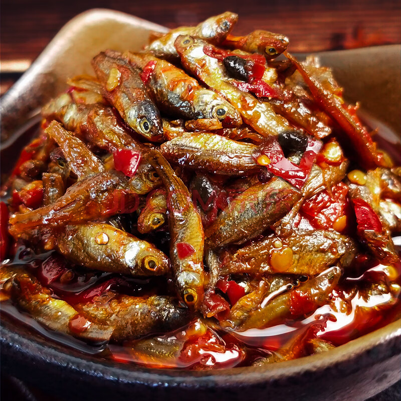 商品相册:辣小董剁椒火焙鱼230g*2湖南特产香辣柴火小鱼仔干即食下饭菜早餐酱腌菜第