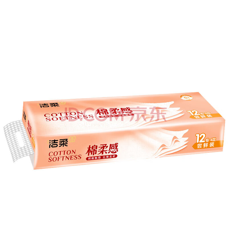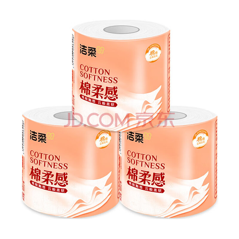 商品相册:洁柔有芯卷纸 棉柔感加厚4层105g*12卷 卫生纸 双面立体压花 柔厚如棉第
