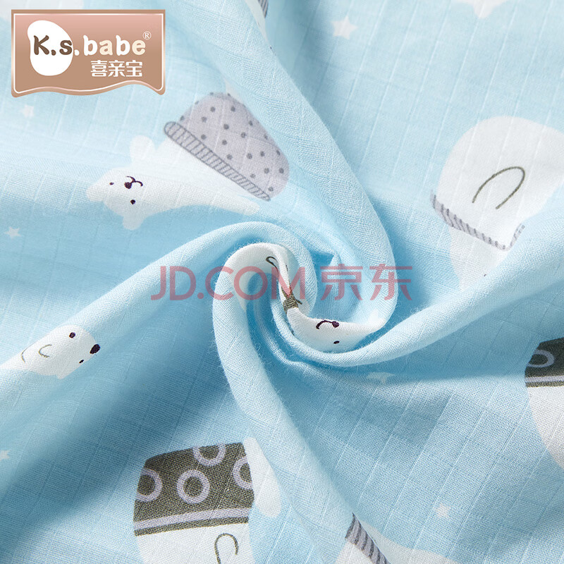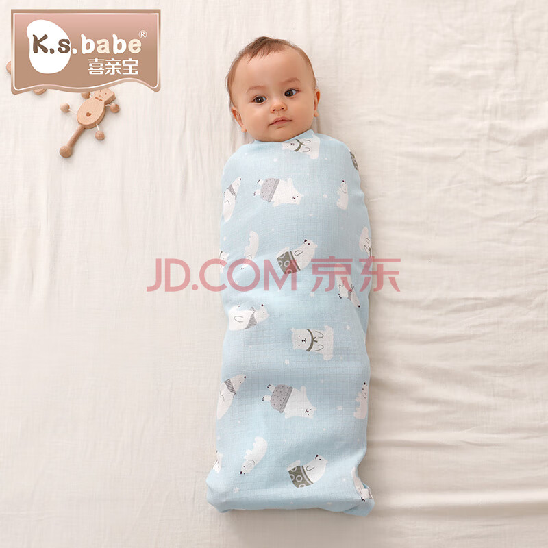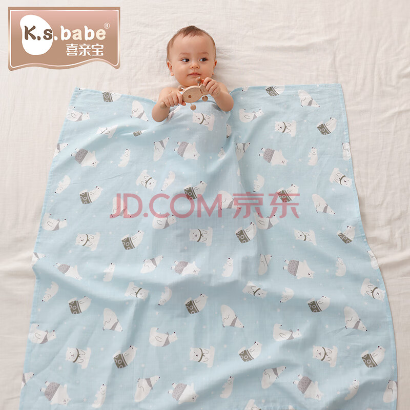 商品相册:喜亲宝新生儿包巾宝宝产房纱布包单襁褓巾喂奶巾90*90cm纱布蓝色(薄)第