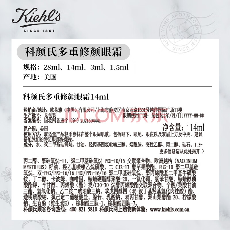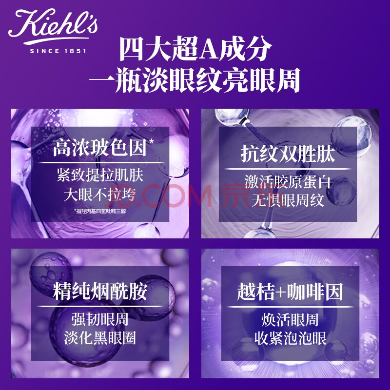 商品相册:科颜氏(Kiehl's)紫玻A眼霜14ml 修护保湿抗皱紧致护肤品礼盒 生日礼物第