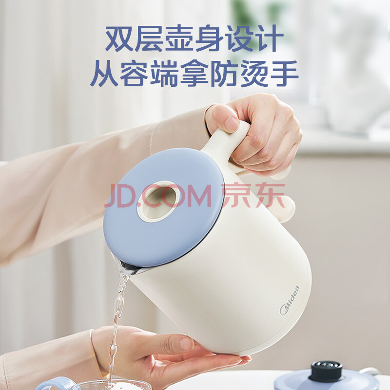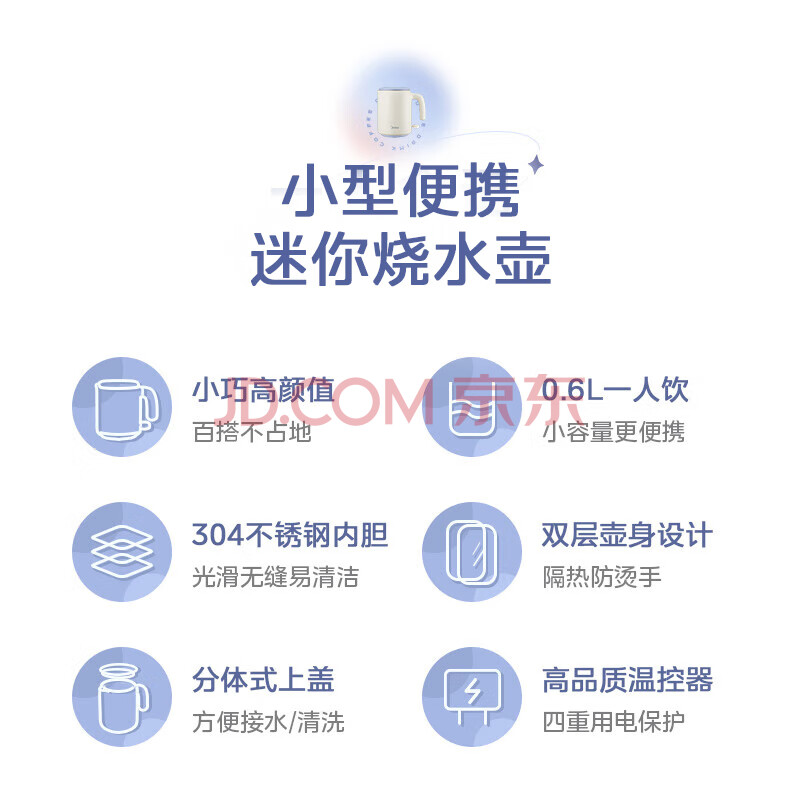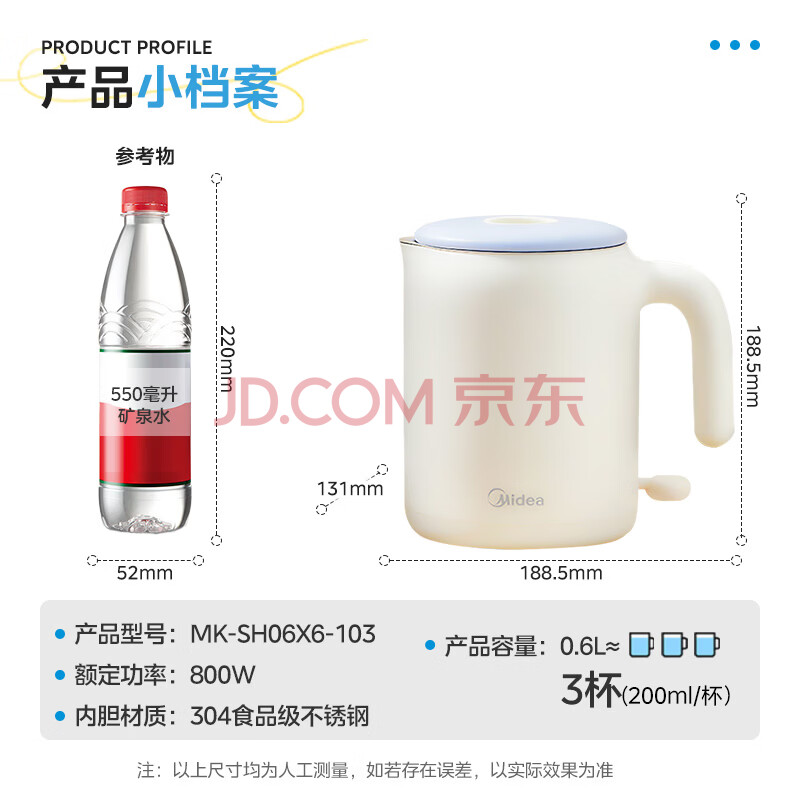 商品相册:美的(Midea)电热水壶米色烧水壶便携式烧水杯差旅春游 0.6L智能断电304食品级不锈钢迷你便携小容量SH06X6-103第