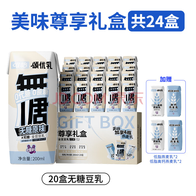 商品相册:颂优乳无糖原味植物蛋白豆乳低糖燕麦乳组合营养豆奶200ml*24盒礼盒装第