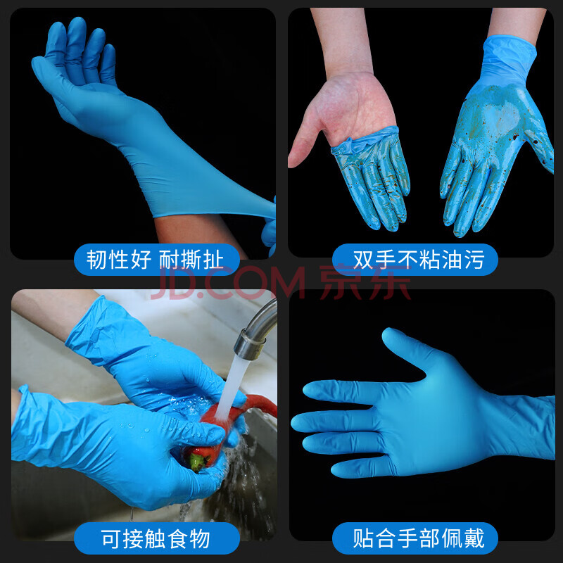 商品相册:英科医疗(INTCO)一次性手套丁腈手套100只中码食品级餐饮清洁蓝色橡胶丁晴手套第