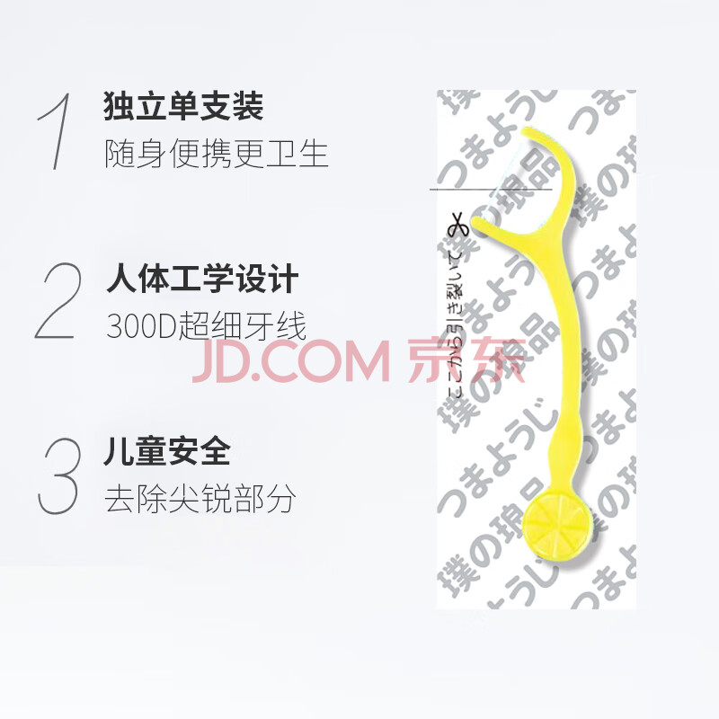 商品相册:璞之琅品 日本儿童牙线108只 超细牙线棒便携独立包装特细剔牙线 2-14岁幼儿适用第