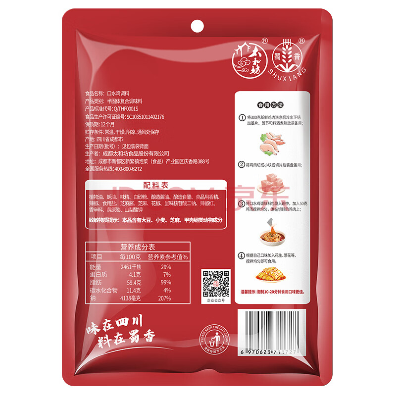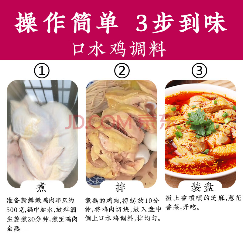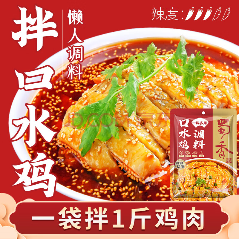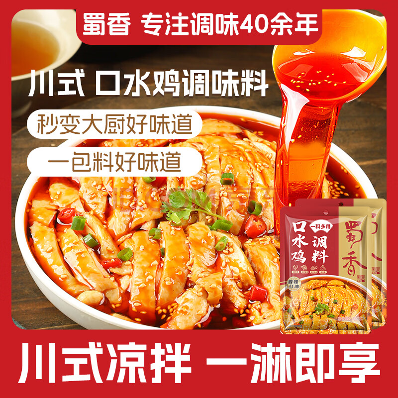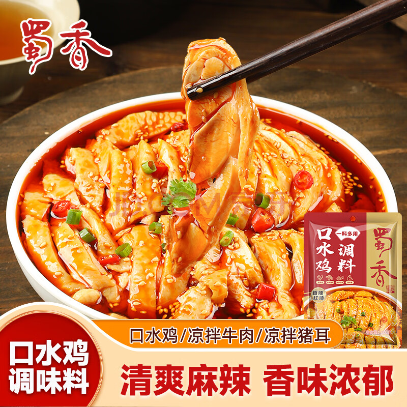 商品相册:蜀香 麻辣口水鸡调料100g*3袋 四川拌鸡拌菜调料棒棒鸡凉拌白肉料第