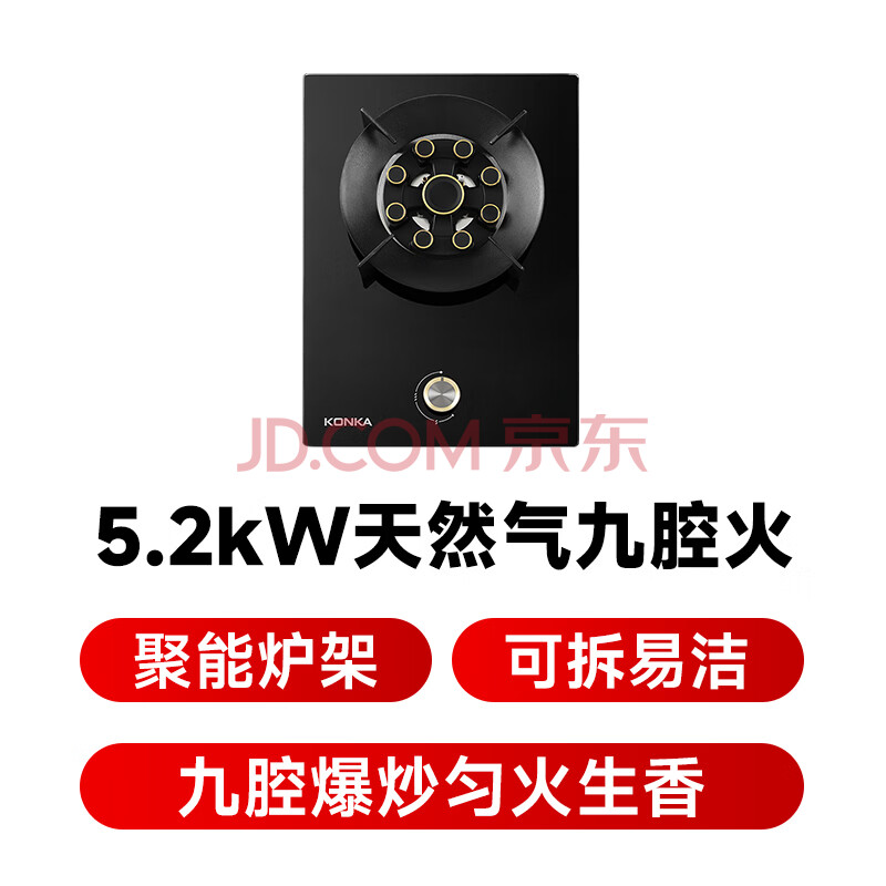 商品相册:康佳(KONKA)燃气灶煤气灶单灶 5.2kW九腔内铜火盖天然气猛火灶具 嵌入式台式两用 JZT-D520Y(Y)(天然气)第