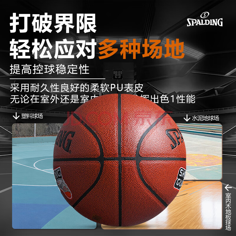 商品相册:斯伯丁(SPALDING)篮球室内外通用耐磨PU成人训练7号球76-891Y第