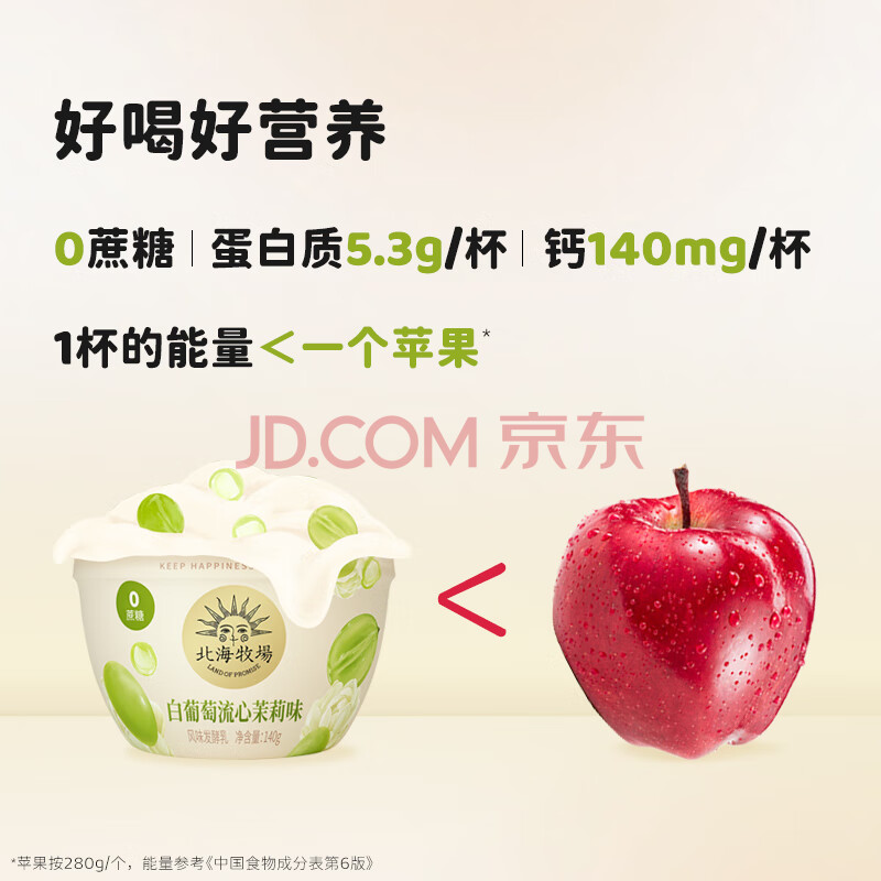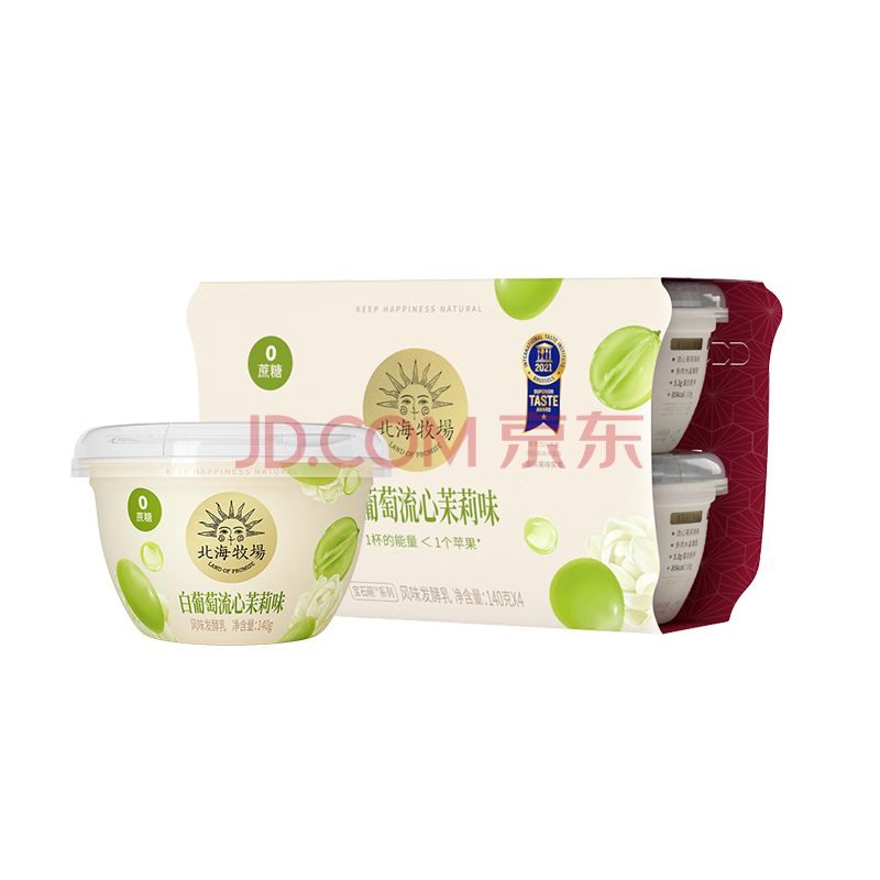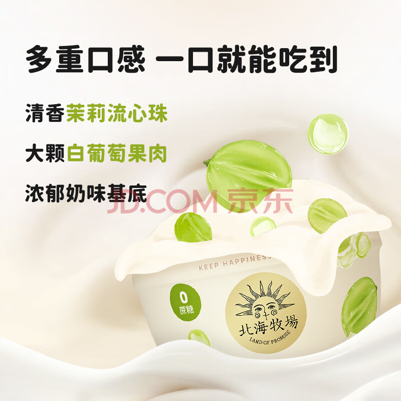 商品相册:北海牧场宝石碗白葡萄流心茉莉140g*4杯0蔗糖3.8g/100g蛋白无蔗糖低温酸奶第