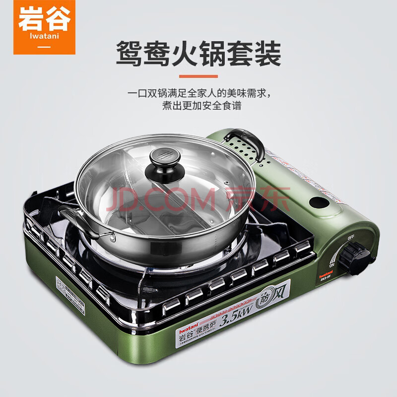 商品相册:岩谷便携卡式炉自驾游户外防风野炊燃气炉火锅炉具 ZKZ-2F+鸳鸯锅套装第