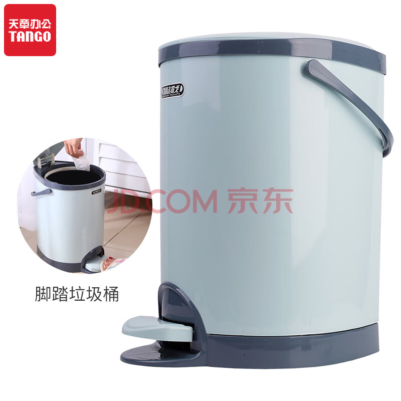 商品相册:天章(TANGO)垃圾桶家用带盖厕所卫生间筒脚踏式大容量8.5L客厅轻奢厨房办公室商用 圆形脚踏垃圾桶(有桶) 第