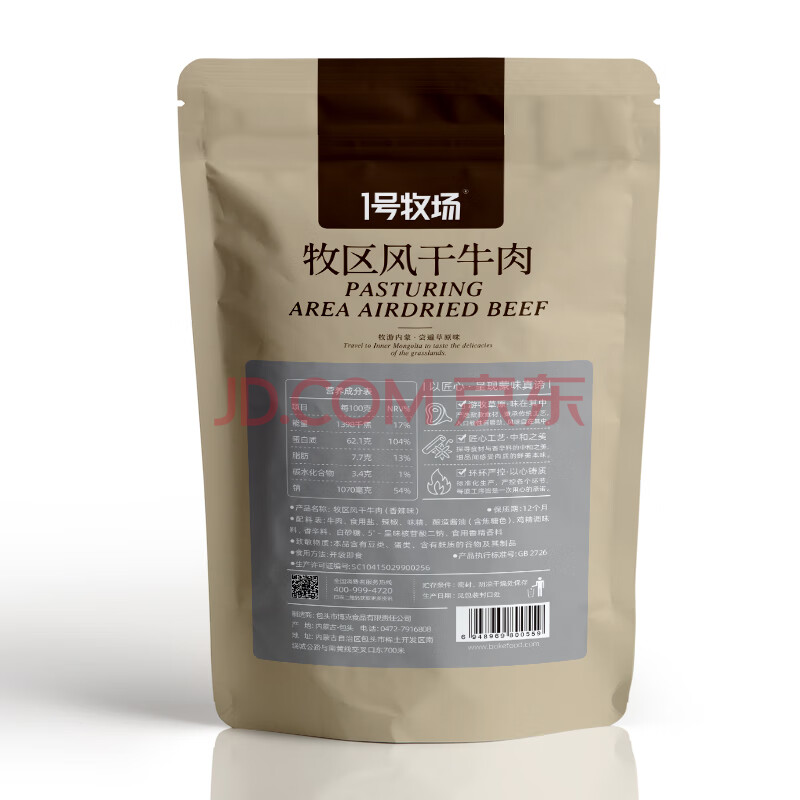 商品相册:1号牧场 牧区超干 香辣200g 约9成风干 袋装 超干牛肉干 肉干肉铺第