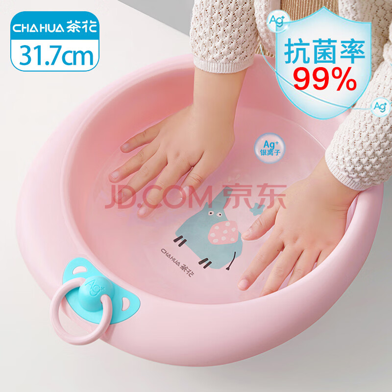 商品相册:CHAHUA茶花 儿童抗菌洗脸盆31.7cm1只加厚塑料盆洗衣服洗脚盆粉色*第