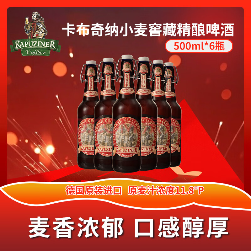商品相册:卡布奇纳(KAPUZINER)窖藏小麦精酿啤酒500ml*6瓶 德国原装进口新年冬季礼盒整箱啤酒第