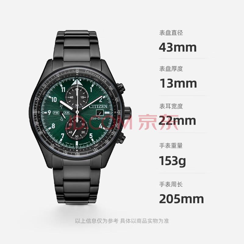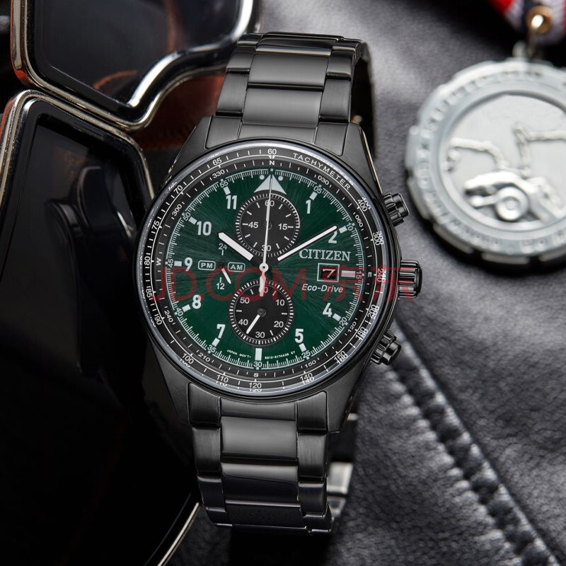 商品相册:西铁城(CITIZEN)手表男日韩表FF系列光动能绿盘钢带商务送男友礼物CA0775-87X第