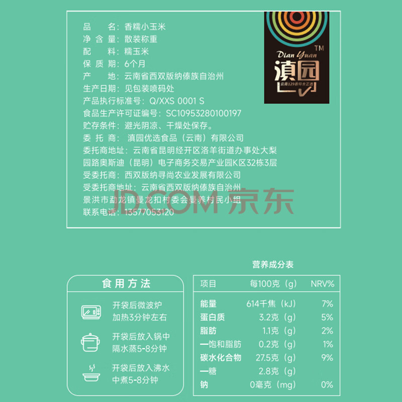 商品相册:滇园(dianyuan) 云南西双版纳香糯小玉米礼盒装3斤 大号拇指玉米粗粮0添加 第