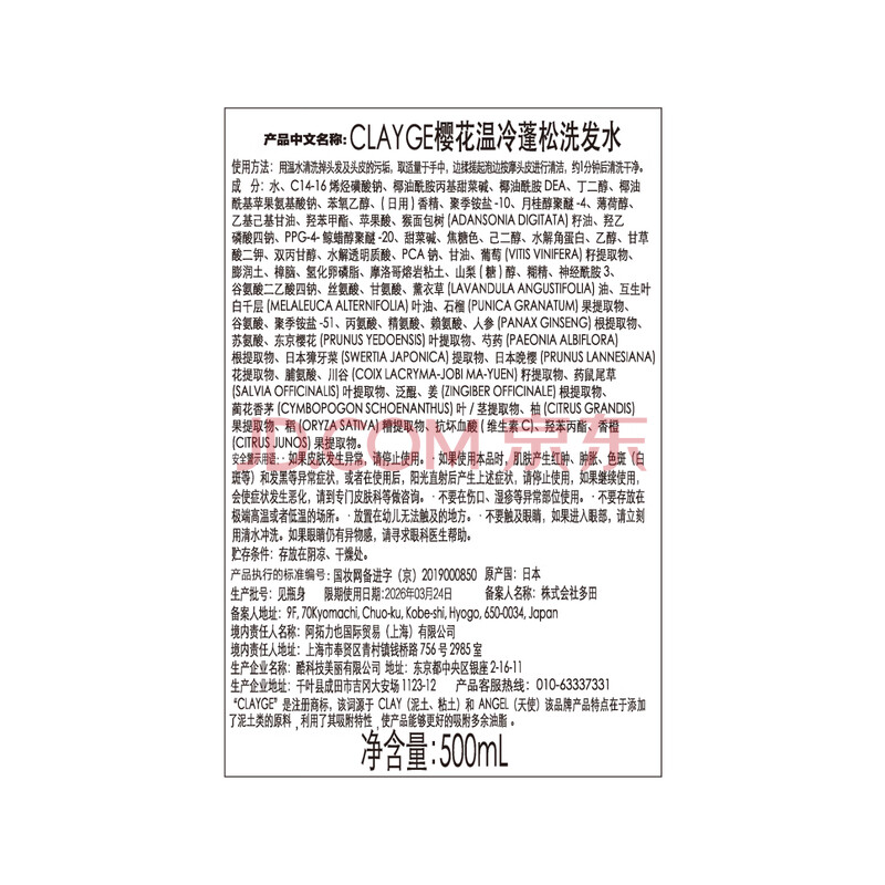 商品相册:CLAYGE 可休樱花温冷蓬松洗发水500ml 无硅油 浪漫香氛 清爽控油 第