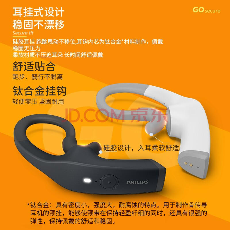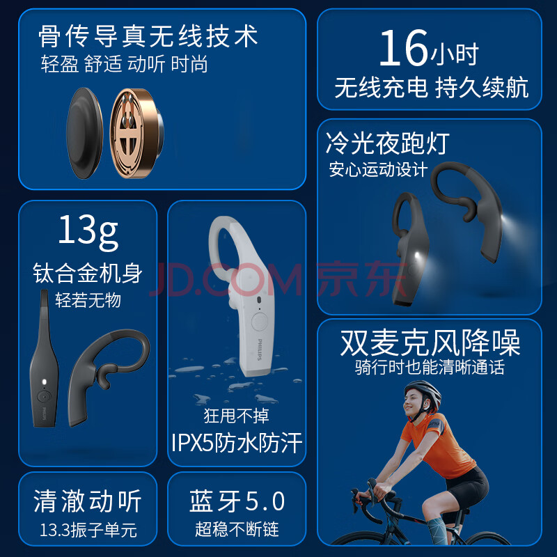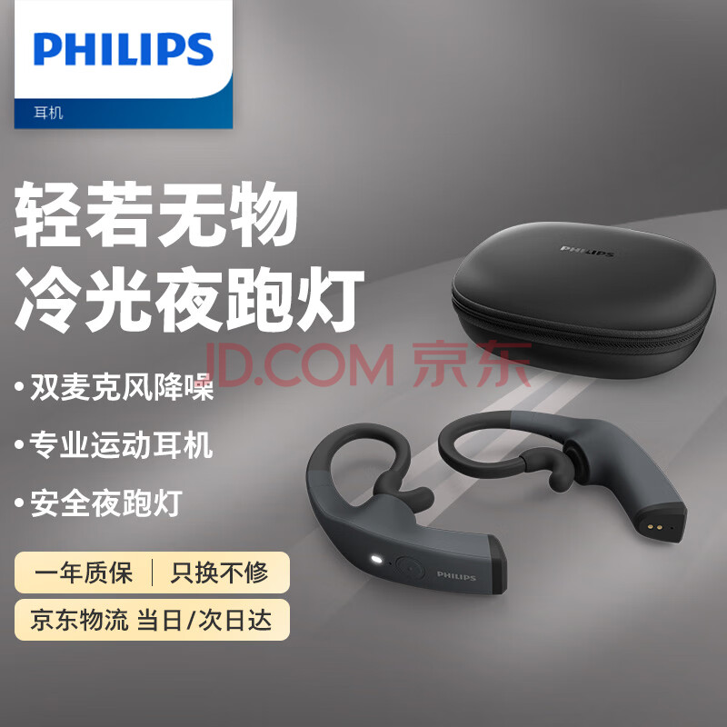 商品相册:飞利浦(PHILIPS)骨传导蓝牙耳机TAA8606 运动真无线耳机冷光夜跑灯双麦克风降噪跑步骑行娱乐休闲音乐耳机耳挂式黑第