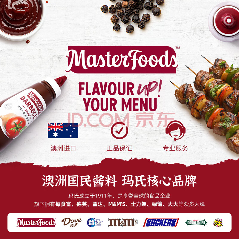 商品相册:每食富(MasterFoods)烧烤酱500ml澳洲原装进口美式BBQ黑胡椒味烤肉酱家用露营调味品酱第