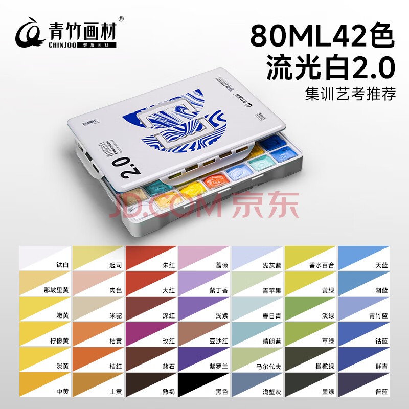 商品相册:青竹画材(CHINJOO)水粉42色80ml颜料套装学生艺考联考艺术创作画室名师推荐色彩课水粉画颜料速写马克笔绘画第