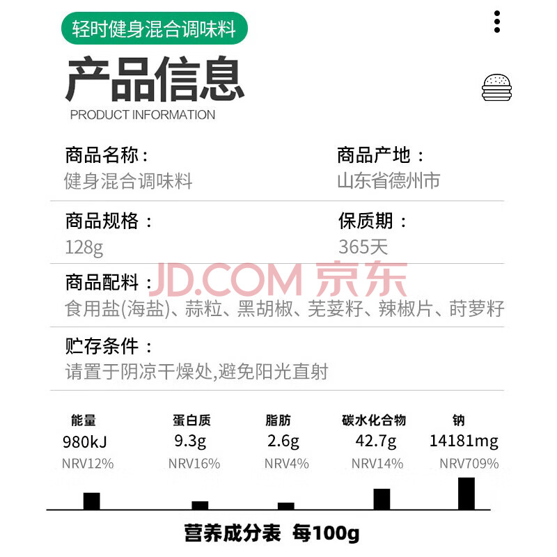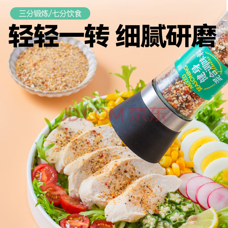 商品相册:轻时 低脂健身混合调味料128g 黑胡椒研磨瓶 鸡胸肉牛排意面西餐料第