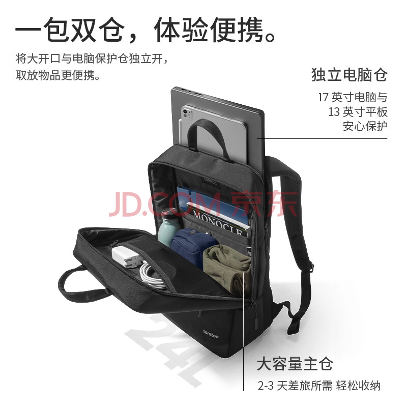 商品相册:tomtoc电脑包双肩包大容量背包男士16英寸笔记本防震商务出差旅行包第