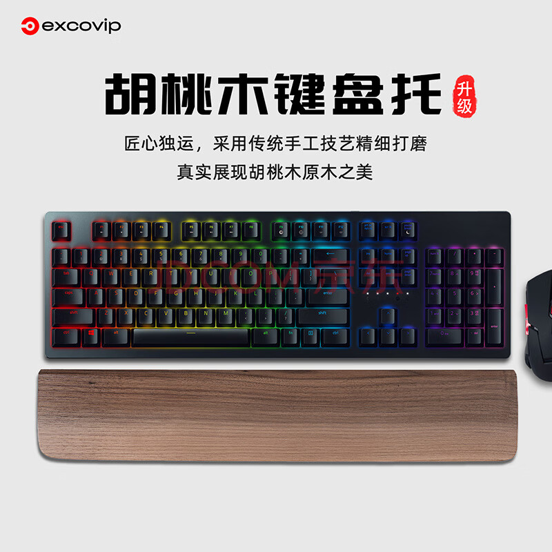商品相册:宜适酷(EXCO)新胡桃木104键键盘托实木机械键盘手托98键电脑掌托鼠标垫护腕垫电竞木质腕托108键大号9717第