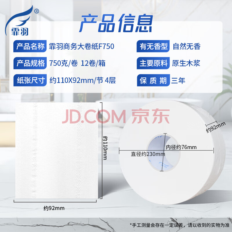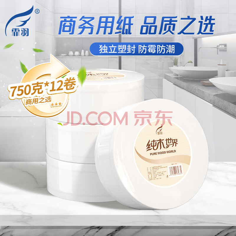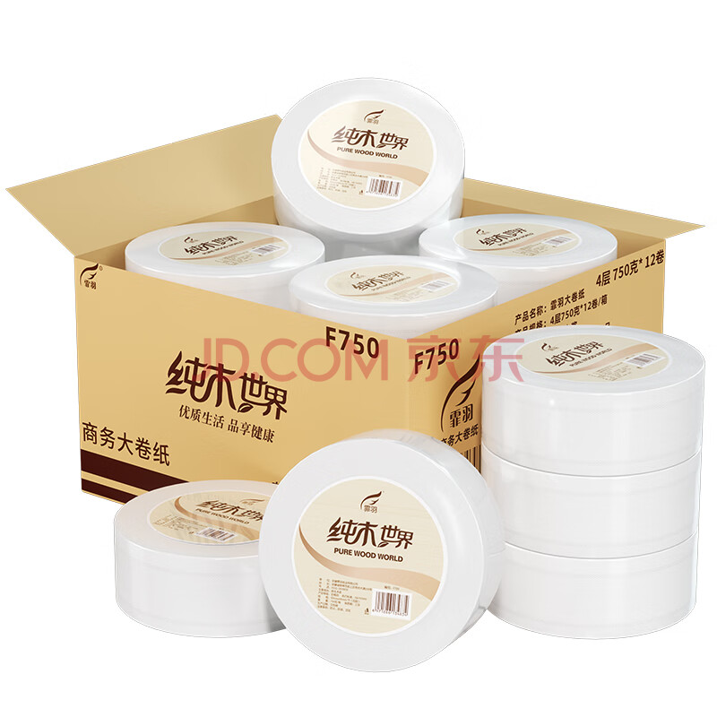 商品相册:霏羽有芯大卷纸4层750克*12卷商用酒店大盘纸厕纸手纸卫生纸整箱F750第